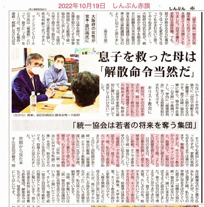 母親自身が「これは人権無視の行為ではないか」と葛藤しているように、その実態は、明らかな人権侵害行為を牧師が主導し、さらに日本共産党議員が政治的に加担していたのです。