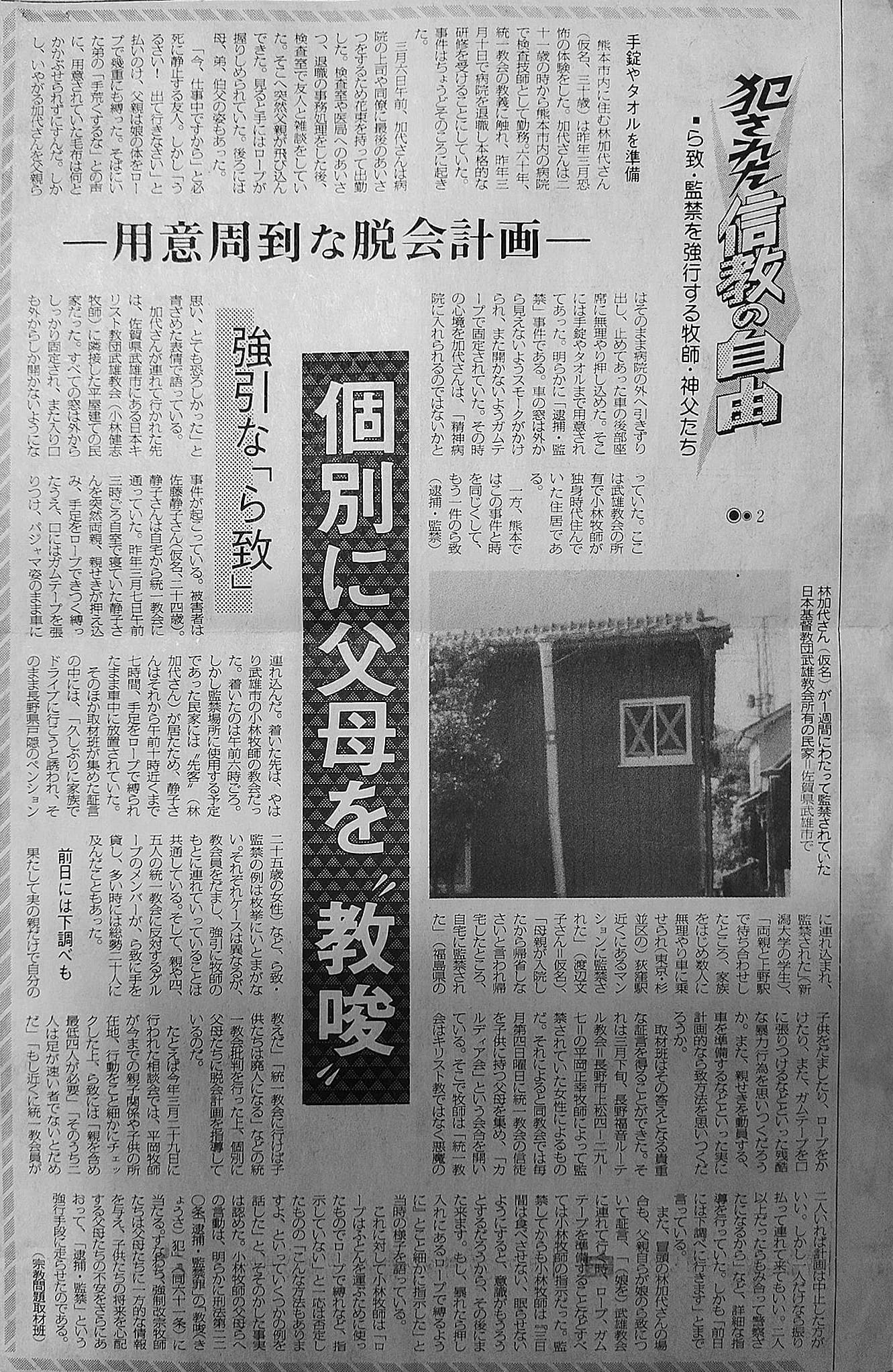以下の内容は当時新聞に掲載された「犯された信教の自由 ■ら致・監禁を強行する牧師・神父たち②」をテキスト化したものです。日付なども当時のものとなります。