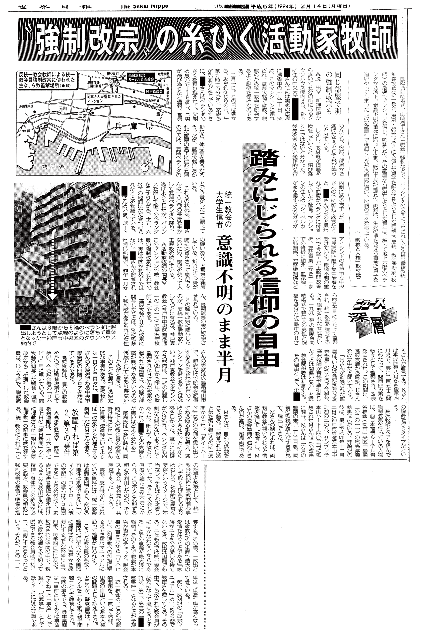 6階の監禁場所から逃げようと落下し意識不明の重体という痛ましい事件が平成6年に起こりました。