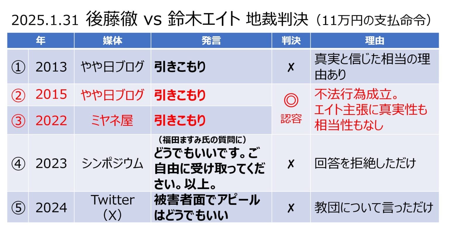 鈴木エイト氏の名誉毀損、不法行為が認められ11万円の賠償命令が下されました。